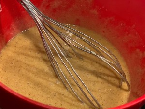 Använd en ballongvisp och vispa för hand, inte med elvisp