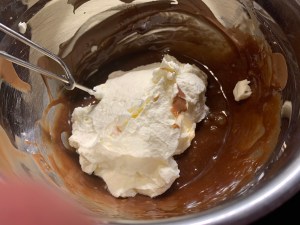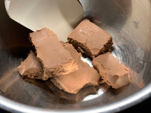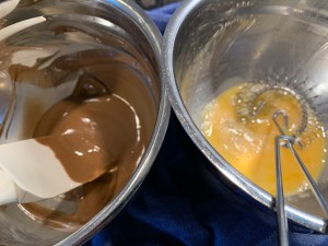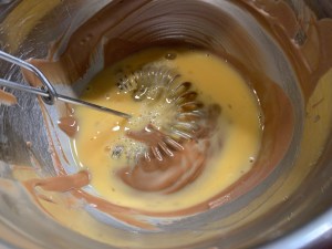För ett antal år sedan tröttnade jag rejält recept på chokladmousse som ofta skar sig och krävde flera olika moment. Funderade då på en variant som skulle hålla och vara enkel att jobba med och god såklart. Landade i detta receptet, och jag har en stark känsla av att fler där ute har landat i liknande proportioner till sina mousser. Hitintills har jag aldrig lyckats skära en mousse med detta receptet (peppar peppar). Hemligheten är temperaturen. Ägget och den smälta nougaten behöver hålla ungefär samma temperatur.