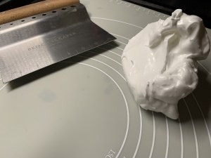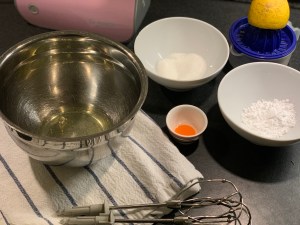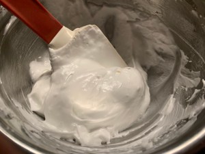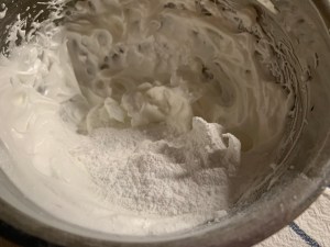 Maräng tar lite längre tid, men eftersom moussen behöver stelna så kan man smidigt sätta igång marängerna när moussen är i kylen så kan de sedan gå i ugnen i lugn och ro. Till den här rätten kan man med fördel ha dem rena i smaken. Vill man kan man smaksätta efter eget tycke. Jag väljer att baka av dem som en stor platta att bryta bitar av och inte som toppar. Fantasin sätter gränsen, helt enkelt. När jag smaksätter mina tycker jag om att toppa med frystorkade hallon. Det finns att köpa bland baktillbehören i välsorterade butiker.