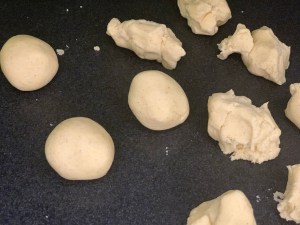 Så, jag tänkte att smygändra går inte längre. I batch 3 minskade jag smöret med 40%. För att få en tightare och torrare mördeg. Döm om min förvåning när degen kändes som jag minns mördeg från back in the days. När Marika på restaurang Åsunden lärde mig att baka småkakor. Just den känslan när mördegen är så mättad att den stundtals spricker när man rullar den, den känslan. Jag valde att öka storleken till 35g deg styck och fick ner ca 6g sylt i varje kaka den här gången.