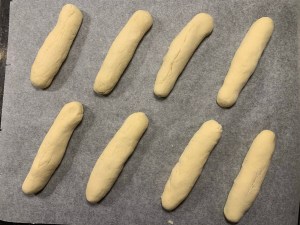 Har även testat att bak av dem som korvbröd i två olika storlekar, 45g och 60g. Skulle säga att 45g blir ungefär som ett vanligt köpt korvbörd i storlek och 60g lämpar sig bättre till lite större korvar. Bilderna är på 60g bröden. Jobbade inte mycket på finishen, men ville visa även dessa bilder, för att ni ska jäskraften i degen.