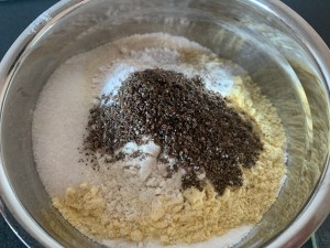 - Rosta de blötlagda mandlarna på 200°c i 10min, rör var 3.e minut