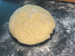 - Ta upp på mjölad bänk och knåda den, låt den sen vila i 20min under handduk