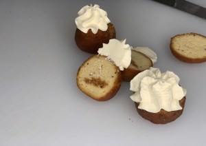 - När du sen ska använda din crème så vispa grädde hårt, och blanda lika delar vaniljcrème med vispad grädde med en visp, till en slät crème.
