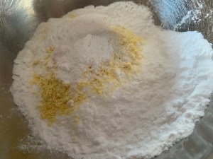 3. Blanda mjöl, xantangummi, salt och bakpulver i en skål