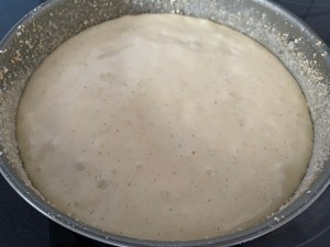 6. Häll i formen och grädda mitt i ugnen i 20-25min beroende på ugn, stick med provsticka för att se att den är klar