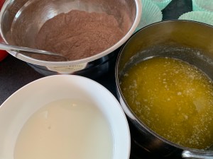 Kort och gott, detta är i stort sett samma muffins recept som till bärmuffinsen, men jag drog ner 30g av mjölet och ersatte med kakao. Sen tog jag en spritspåse och fyllde de med nutella, toppade med köpt kolasås (man kan såklart koka egen) och toppade kolan med flingsalt. Bakade av och lät dem svalna innan jag smakade och det blev en balanserad chokladsmak med en god ficka nutella i mitten. Kolan och saltet ger en skön touch.