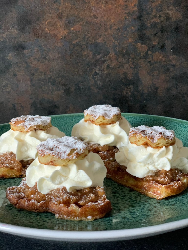 Det föll sig lite naturligt med senaste veckornas fokus, och fettisdagen runt hörnet, att dessa godbitar testades. Jag hade gräddat frasvåfflor på mitt nya recept på morgonen, rostad mandelmassa fanns i kylen sen ett tidigare bak och ja.. resten är historia. Kort och gott, mitt våffelrecept, min rostade mandelmassa, vispad grädde, florsocker och kardemumma.