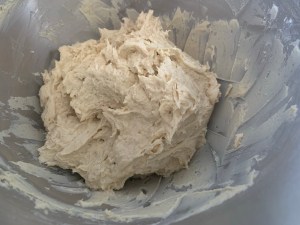 - Skrapa ihop degen och låt den jäsa i plastad bunke i ca 60min