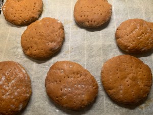 - Lägg på bakplåtspappersklädd plåt och nagga med gaffel