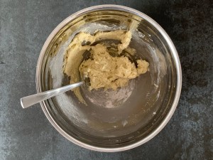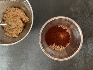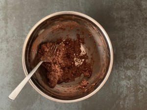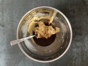 Smidig deg som blandas med gaffel. Smör, socker, kaffe, arraksarom, havregryn osv. Rullas till 2st längder med önskad tjocklek. Skulle tro att mina är ca 3cm i diameter. Sen kylar jag längderna, kavlar ut marsipanen och rullar in dem. Renskär, delar i bitar som passar mig och doppar i choklad, ca 8-10st bitar.