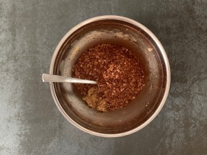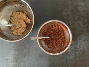 Klassisk kondiskaka, originalet är på kaksmulor. Jag testade det, bakade en sockerkaka (receptet kommer snart på bloggen) och skrev ett recept som jag gjorde med smulad sockerkaka. Samtidigt bredvid, blandade jag en sats med samma proportioner, fast med havregryn istället för kaksmulor. Havregrynen slog sockerkakan med hästlängder så mitt recept är baserat på havregryn.