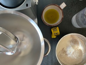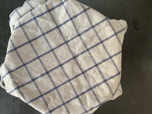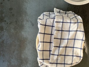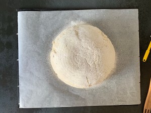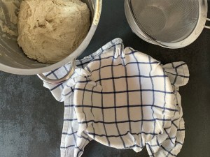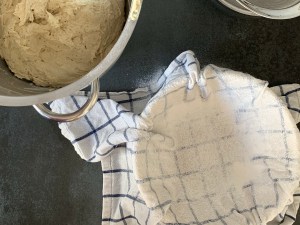 Platta till degen och pudra med rismjöl, vik över handduken och jäs i ca 60min