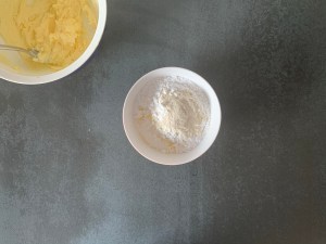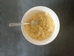 Jag började som med alla andra torra kakor här på bloggen med att blanda smör och socker med en gaffel, sen blandade jag alla torra ingredienser i en skål och tillsatte i smöret. Blandade det till en massa med gaffel och flyttade sen ut det på köksbänken för att knåda samman.
