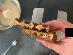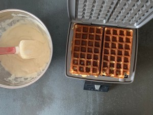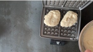 1. Jag lägger alltid min smet på bakre halvan av järnet och sen håller jag nere locket och håller emot i 5-10s när det vill börja lyfta pga jäskraften. Då upplever jag att smeten fyller ut formen och man får en jämn och fin våffla.