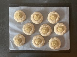 Fyll varje hål med ca 20g vaniljcrème och låt jäsa ytterligare ca 10-15min
