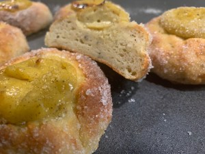 Vad gör man när man har recept på en riktigt bra vetedeg och samtidigt av en händelse råkar ha en burk nykokt vaniljcrème över i kylen. Då testar man om de tillsammans kan skapa magi. Om man utan glutenintolerans trillar in här och läser vissa inlägg så kanske man ställer sig lite frågande till hur man kan bli så glad över en vanlig kaka, eller ett bröd för den delen. Men jag och många av er fick diagnosen som vuxen. Då vet hur gott allt ska och kan vara. Jag vet hur ett bröd ska kännas i munnen och jag minns fortfarande hur en riktigt bra kanelbulle ska smaka. Det är därför jag gör det här, för att jag vill, trots diagnos, få uppleva det smaken och den känslan, och jag vill att det ska vara tillgängligt för fler. Nog om det.