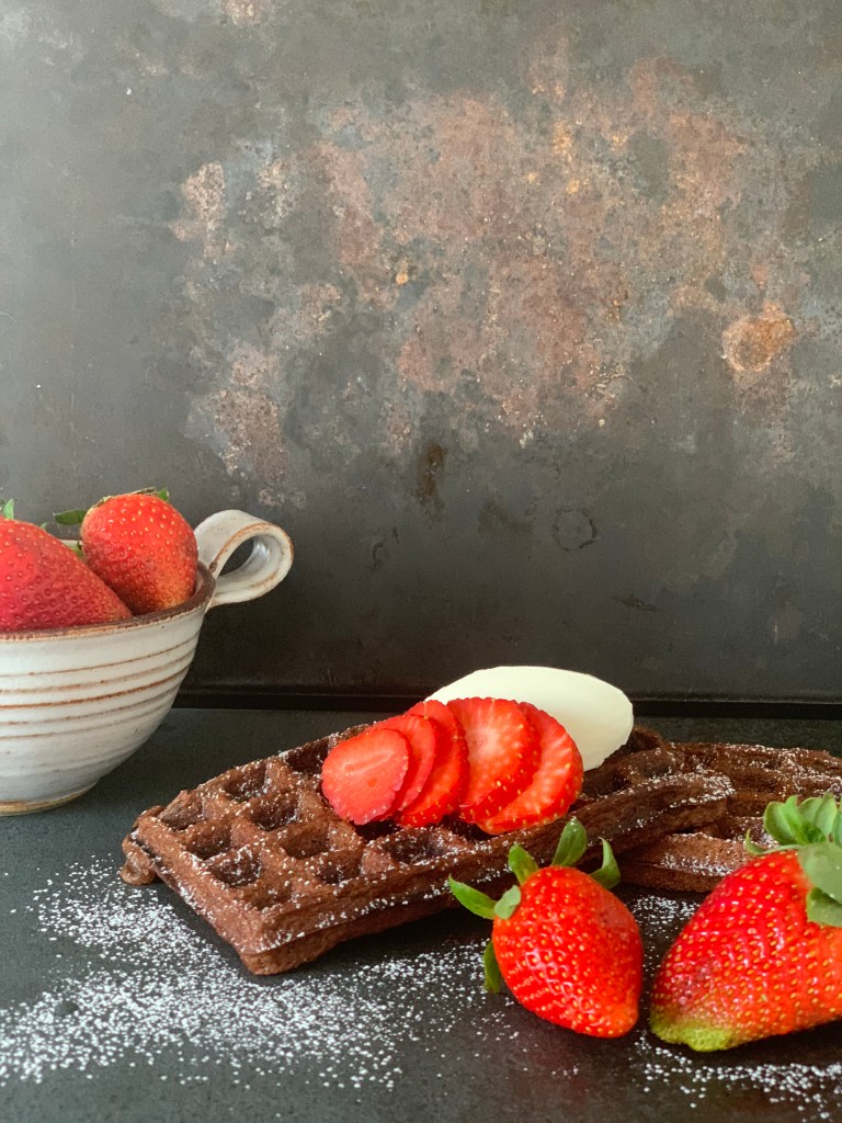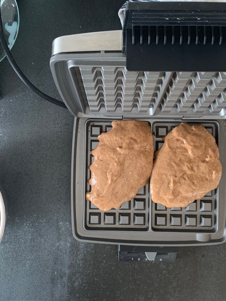 Blev inspirerad av ett inlägg på Instagram med en glutenfylld variant och tänkte att det där måste jag smaka. Min vana trogen så läste jag och kalkylerade, fundera på hur chokladen skulle påverka och hur jag skulle balansera. Konsistensen blev som de vanliga belgiska våfflorna, och jag använder samma bastanke i recepten, där smeten avslutas med att man vänder ner hårt vispad äggvita.