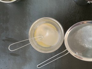 Separera ägget, om man använder ett M/L ägg så behöver man inte väga gula och vita, ta ett ägg i såna fall. Men de går inte om det är ett XL ägg eller ett S ägg, då blir det lite för stor påverkan (tror jag).