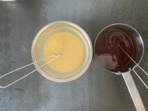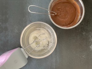 Jag testade med två olika sorters choklad och med en mix av 70 & 80% choklad från Zotter fick jag addera lite mera mjölk än med Odense mjölkchoklad, vet inte om det beror på att Zotters choklad är vegansk, eller om den har mindre fett i sig. Men oavsett choklad, börja med den angivna mängden mjölk och om behovet uppstår så vänd ner ca 20g till med en slickepott, efter äggvitan.