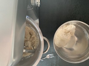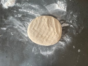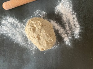 1. Blanda ingredienserna med en gaffel i en skål, arbeta sedan lugnt och metodiskt ut det på degen