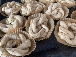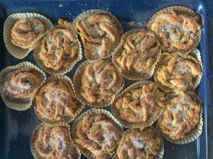 När de jäst klart så penslar jag med ägg, bakar av dem och efter ugnen penslar jag me sockerlag och dekorerar med kardemummasocker. Så gott!