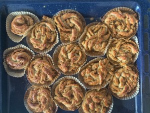 Man kan självklart rulla vanliga bullar och baka av dem på samma sätt som dessa kanelbullarna