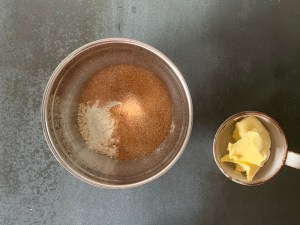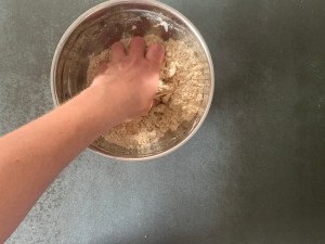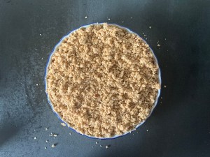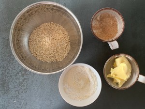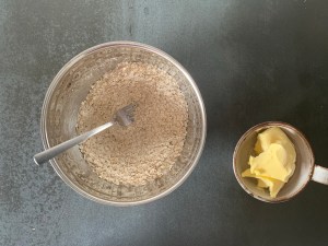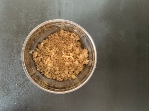 Sen gjorde jag en crumble på bland annat havregryn, farinsocker, rismjöl och mjukt smör.
