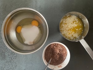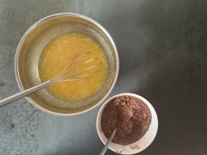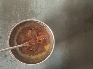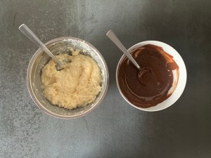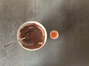 1. Smält chokladen och blanda med rapsoljan, låt svalna men inte stelna