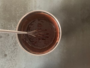 4. Häll över den smälta chokladen och bred ut den jämnt, jag använder mig av en palett