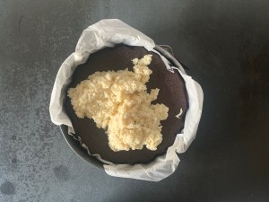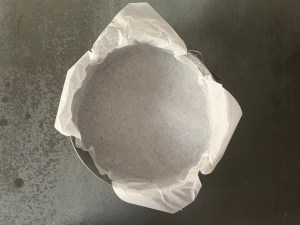 2. Klä en springform, ca 23-25cm stor med ett bakplåtspapper