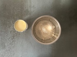 2. Blanda den stora delen kokos med den kondenserade mjölken i en skål