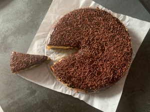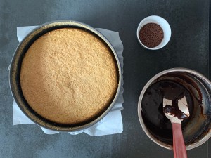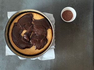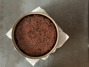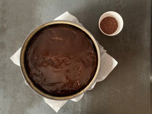 Glasyren fick lite extra vanilj och en bra mängd kakao och istället för kokos toppade jag kakan med chokladströssel.