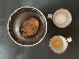 Först väger jag upp rumsvarmt smör med socker, vaniljsocker och sirap, i en bunke. Sen mäter jag upp mjöl och kryddor, mortlar den hela kardemumman och blandar dem i en egen skål. Sen blandar jag socker och smör med en gaffel, till en jämn massa. Tillsätter mjölmixen och blandar samman, oftast avslutar jag med att blanda sista biten för hand, för att få det helt jämnt. Sen kyler jag degen ca 10minuter innan jag väger upp den i 3 lika stora bitar.