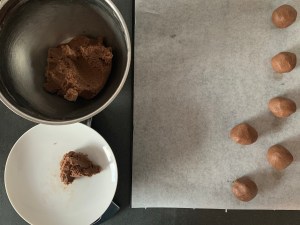 Sen väger jag upp i bitar, rullar till bollar och lägger på plåten och kyler innan jag bakar av dem.