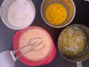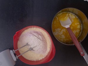 Jag tog receptet till mina Strösselrutor, lät saffranspastiller ligga och dra i mjölken i en timma innan jag bakade kakan. Sen minskade jag vaniljsockret för att saffranssmaken skulle komma fram mer och slippa slåss om platsen med vaniljen.