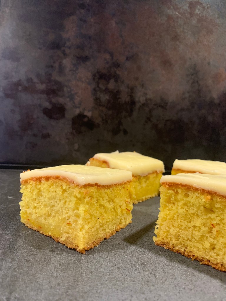 När jag postade receptet till mina Saffransdrömmar på Instagram så kom ett önskemål om att jag skulle baka Saffransmums. Det lät alldeles för gott för att låta bli. Mjuk, saftig kaka med en behaglig saffranssmak, toppad med en krämig glasyr, gott på riktigt. Jag kallar de för Saffransrutor istället för Saffransmums, för mig kändes det tydligare.