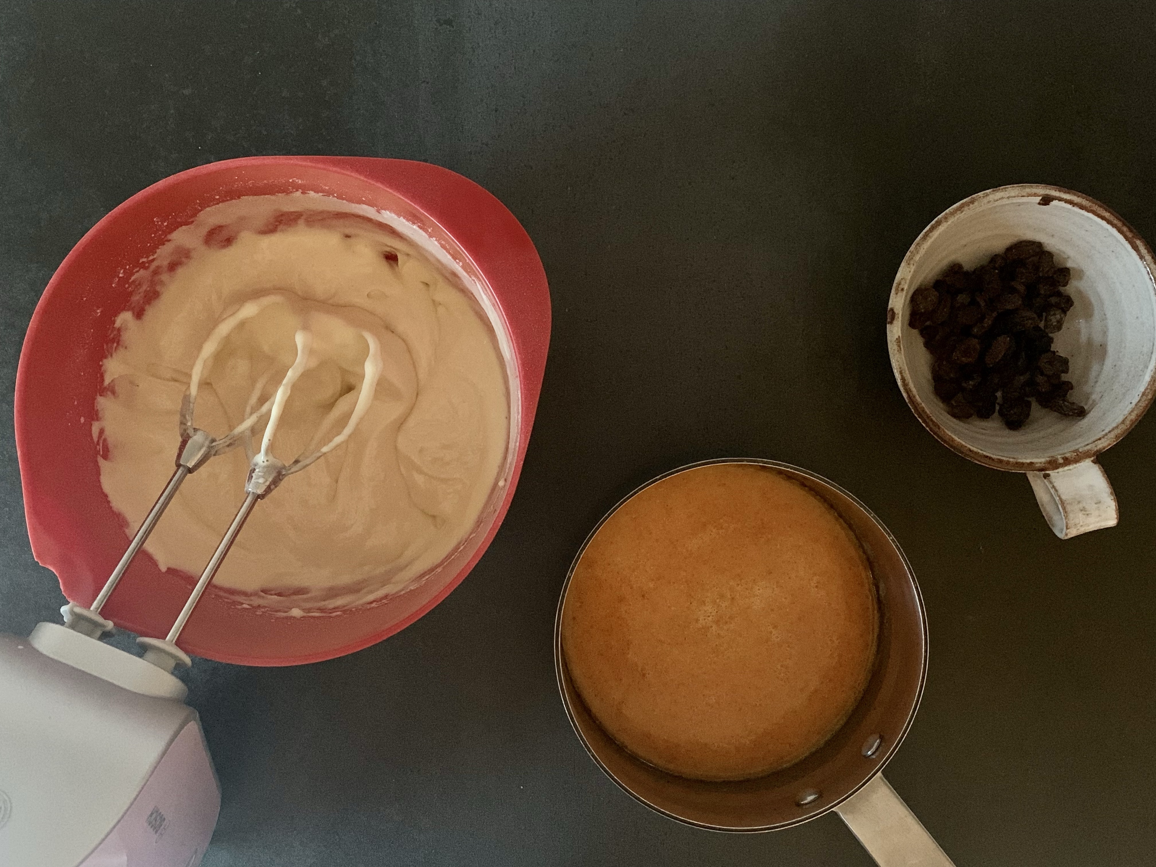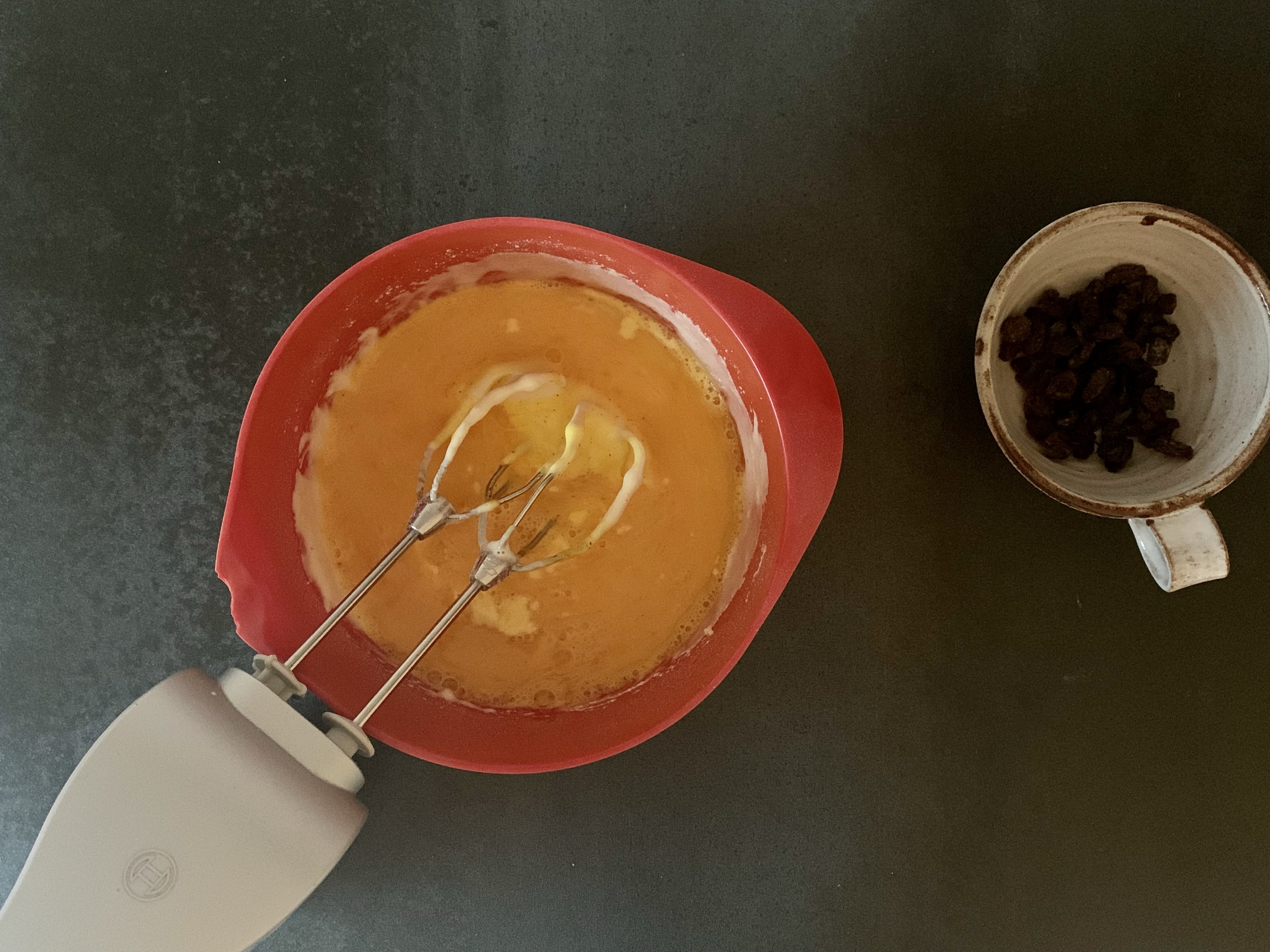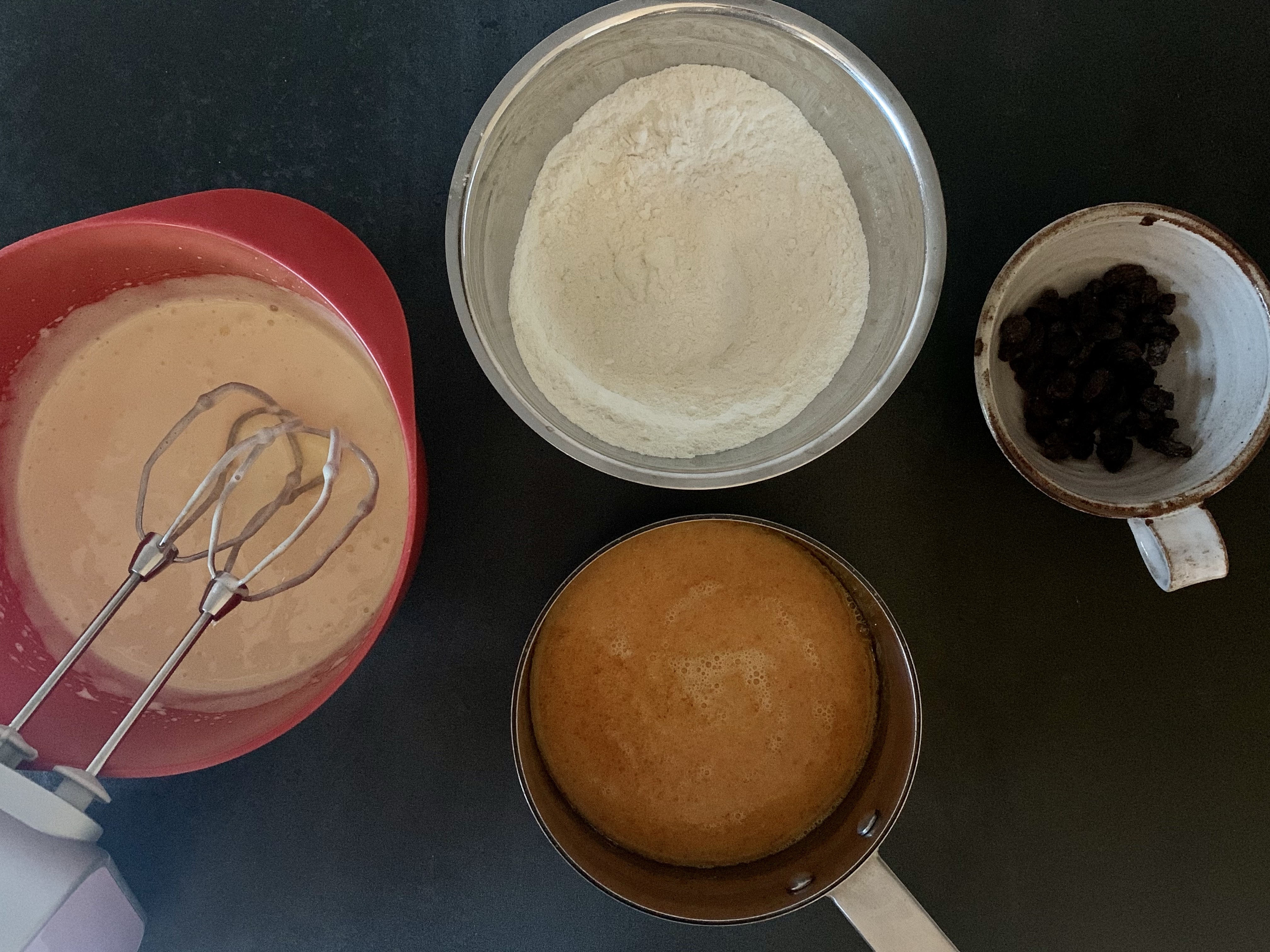 Jag använder mitt vanliga basrecept men plockar bort vanilj och citron och tillsätter saffran och russin.