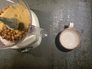 Hasselnötsmassan är som min mandelmassa, lika delar nötter och rårörsocker, lite vanilj och lite vatten. Mixad i en matberedare tills den har en konsistens man tycker om. Jag vill inte ha min för slät.