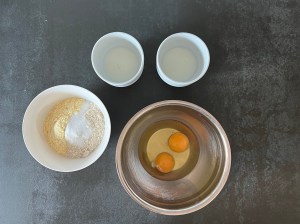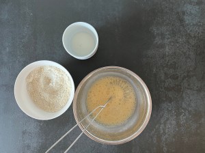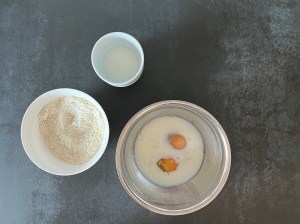 - Vispa samman ägget med hälften av mjölken