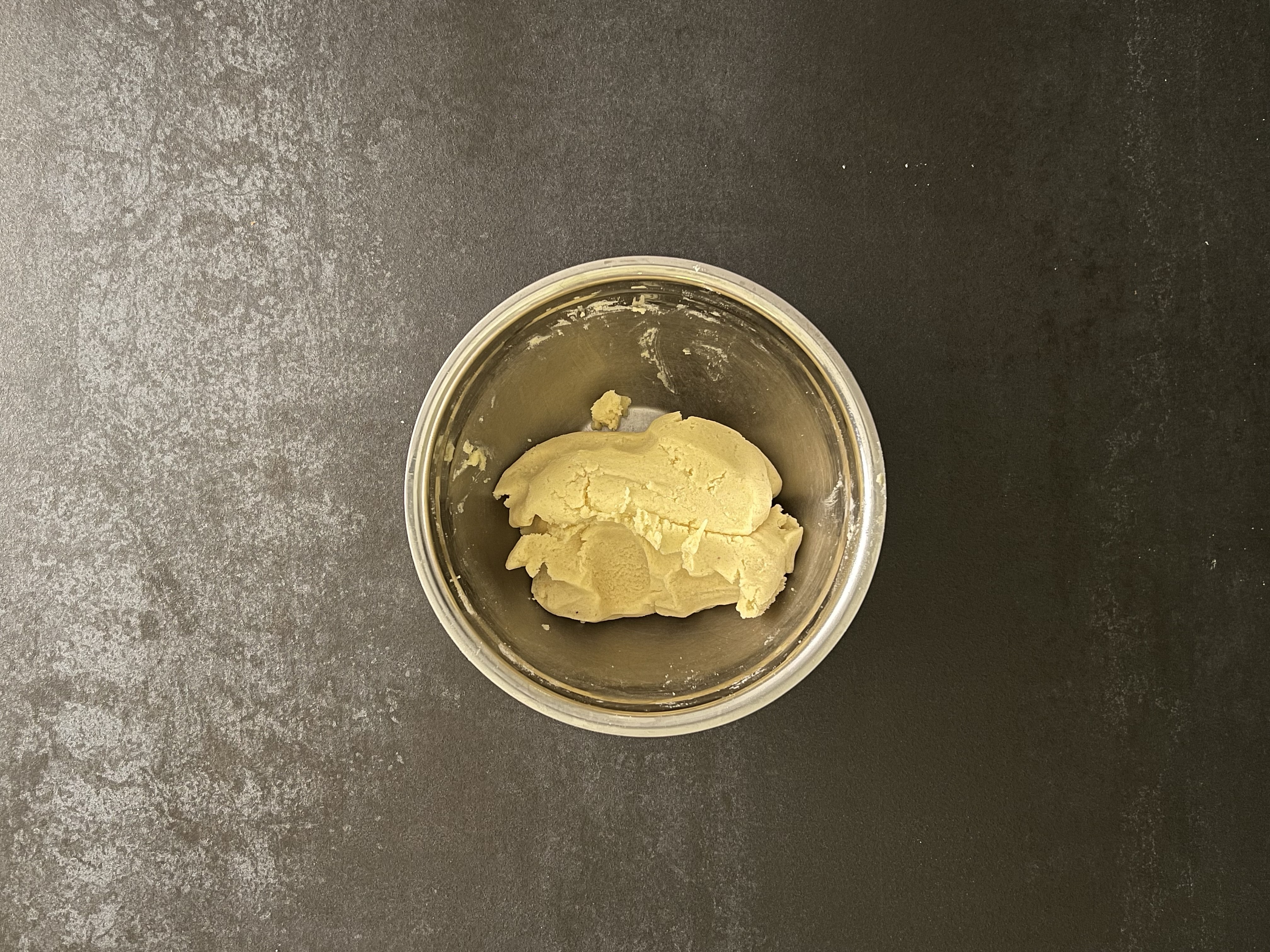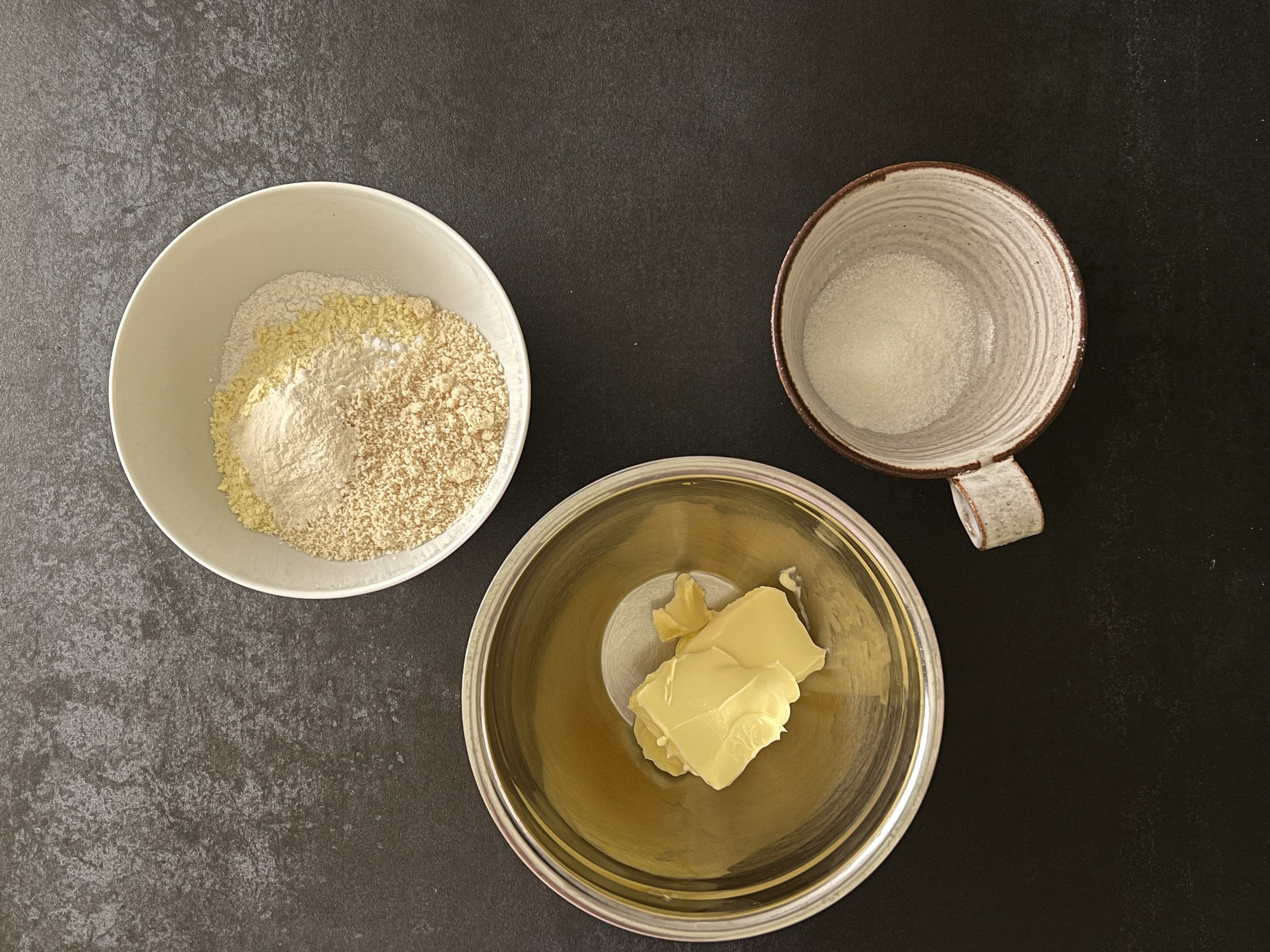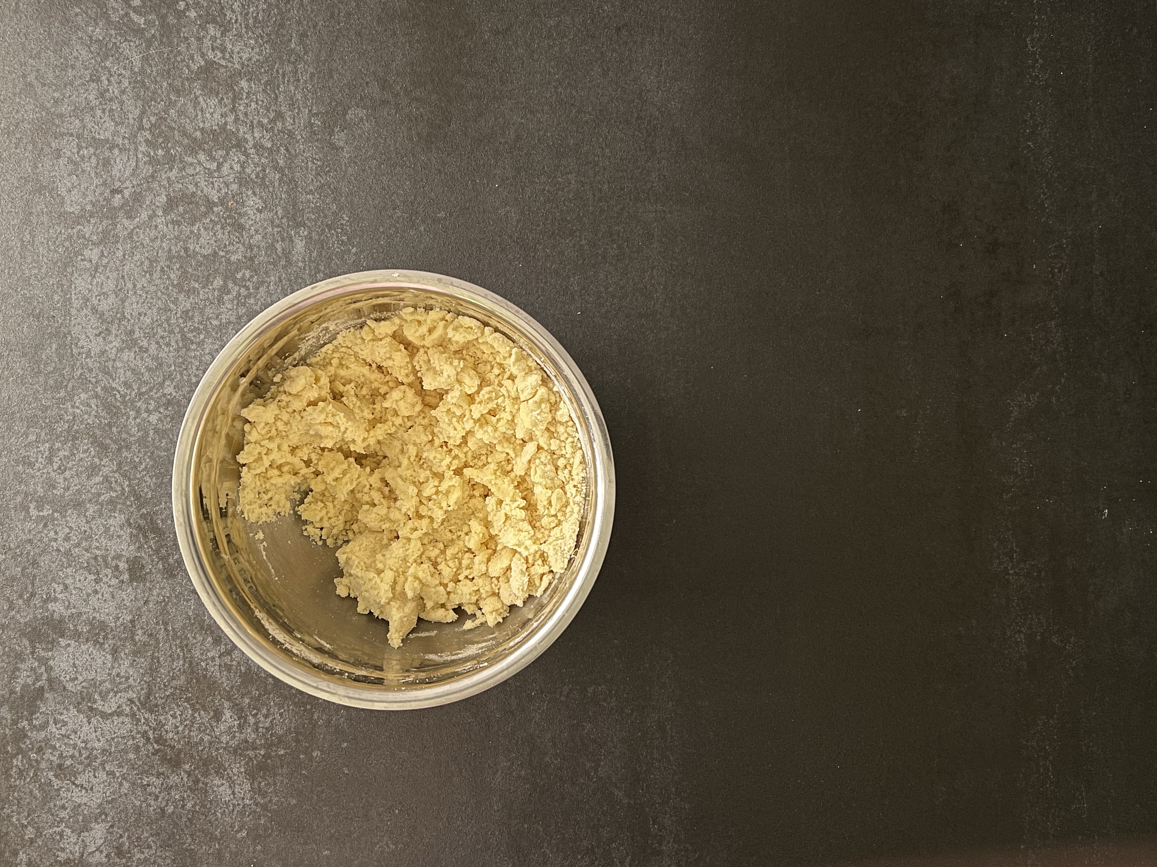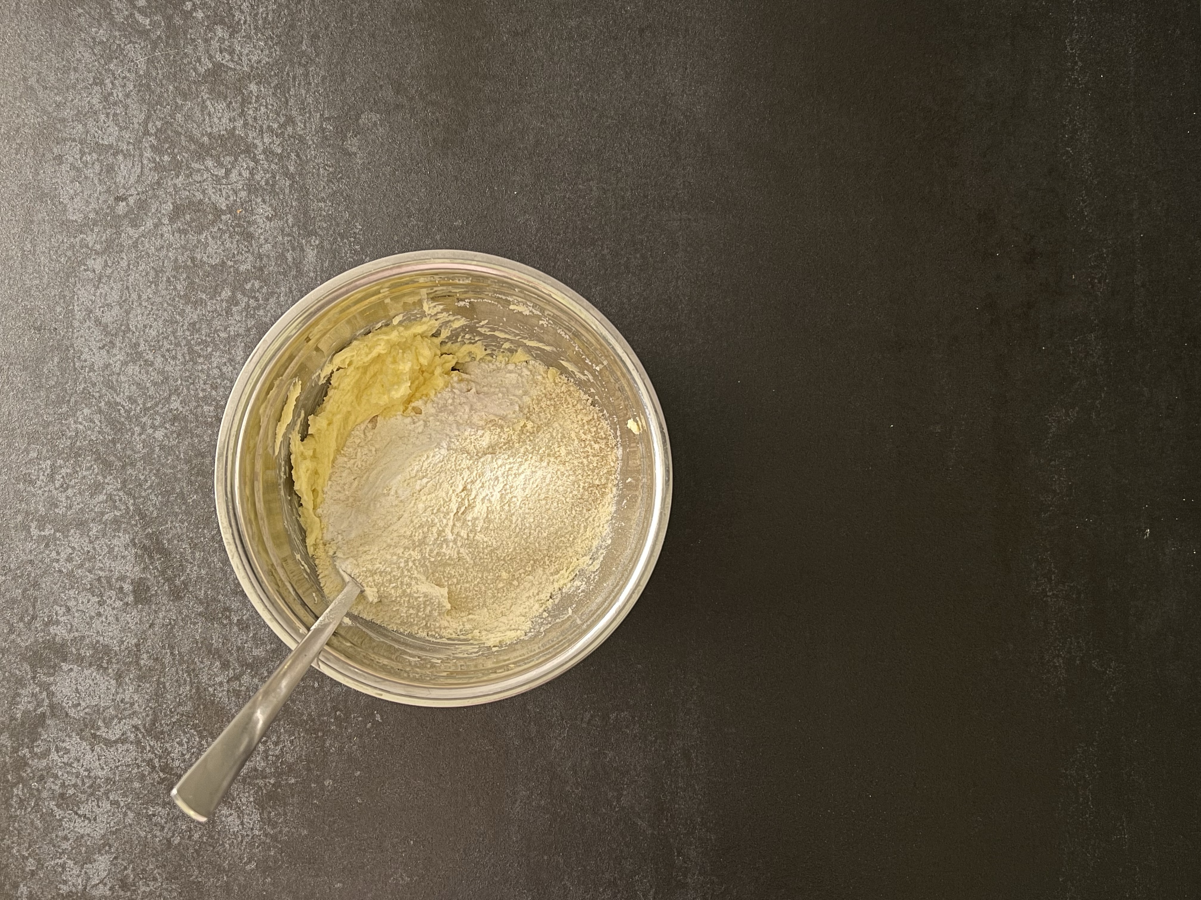 Först blandar jag rumsvarmt smör med strösocker, använder en gaffel. Tillsätter sen en egen mjölmix med lite mandelmjöl i och blandar till en gryning massa, med gaffeln. Sist knådar jag samman den för hand. Efter det väger jag upp den i 3x ca 100g och rullar till finertjocka längder som jag lägger på en bakplåtsklädd plåt och ställer i kylen i ca 30min.