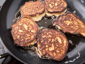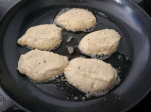 Ett tips när man steker krabbelurerna är att ha en skål med vatten och två matskedar i, så byter man sked för varje man lägger i pannan, då släpper de lättare.
