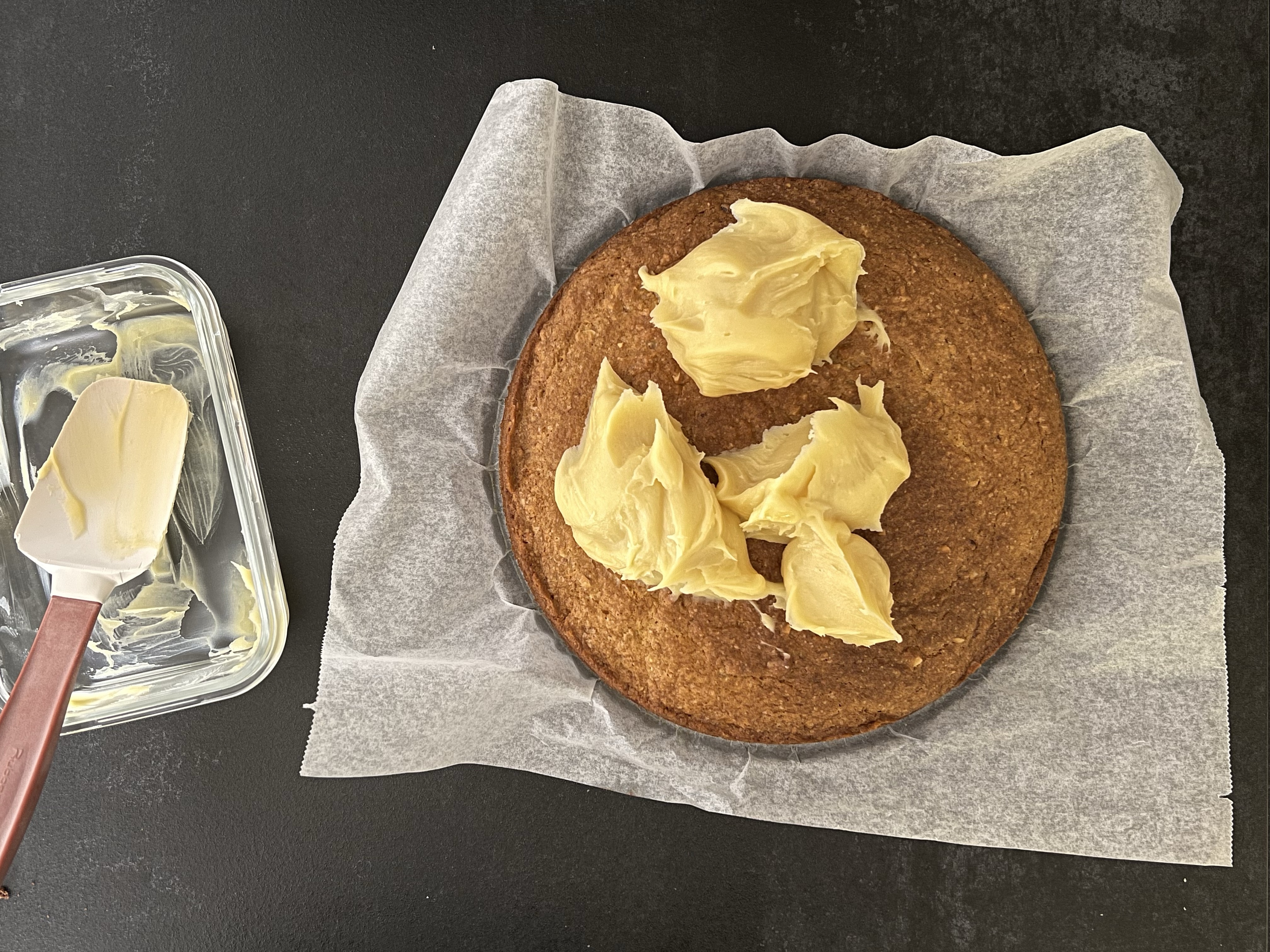 Ta loss ringen på formen och bred på krämen. Allra godast är den rumstempererad.