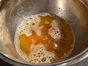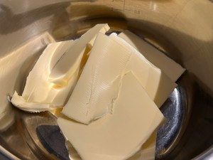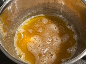 Första steget är att bryna smöret och sen låta det svalna till rumstemperatur. Med fördel bryner man det på kvällen och låter det svalan över natten, eller på morgonen och så kan det stå i lugn och ro när man är på jobb/ i skolan. Man kan också ”stresskyla” det lite och stoppa in det i kylen en liten stund, röra i det, kyla lite till osv, var bara vaksam så att det inte blir för hårt.