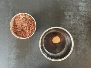 När smöret är rumstempat igen och fast så brygger jag starkt kaffe, allra helst espresso, och kyler kaffet. Väger upp övriga ingredienser.