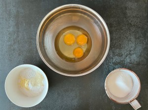 Vispa äggula, socker och majsstärkelse i en skål