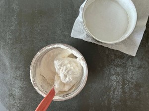 Klä springformen med bakplåtspapper igen