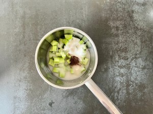 Ansa rabarbern och skär i ca 1cm bitar