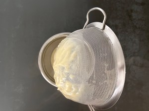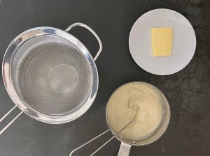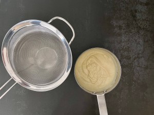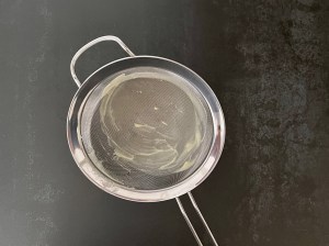 Sila den genom en finmaskig trådsil, ned i en ren bunke