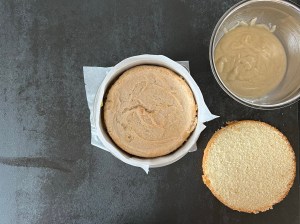 Ovanpå vaniljcrèmen lägger man den andra vaniljbotten